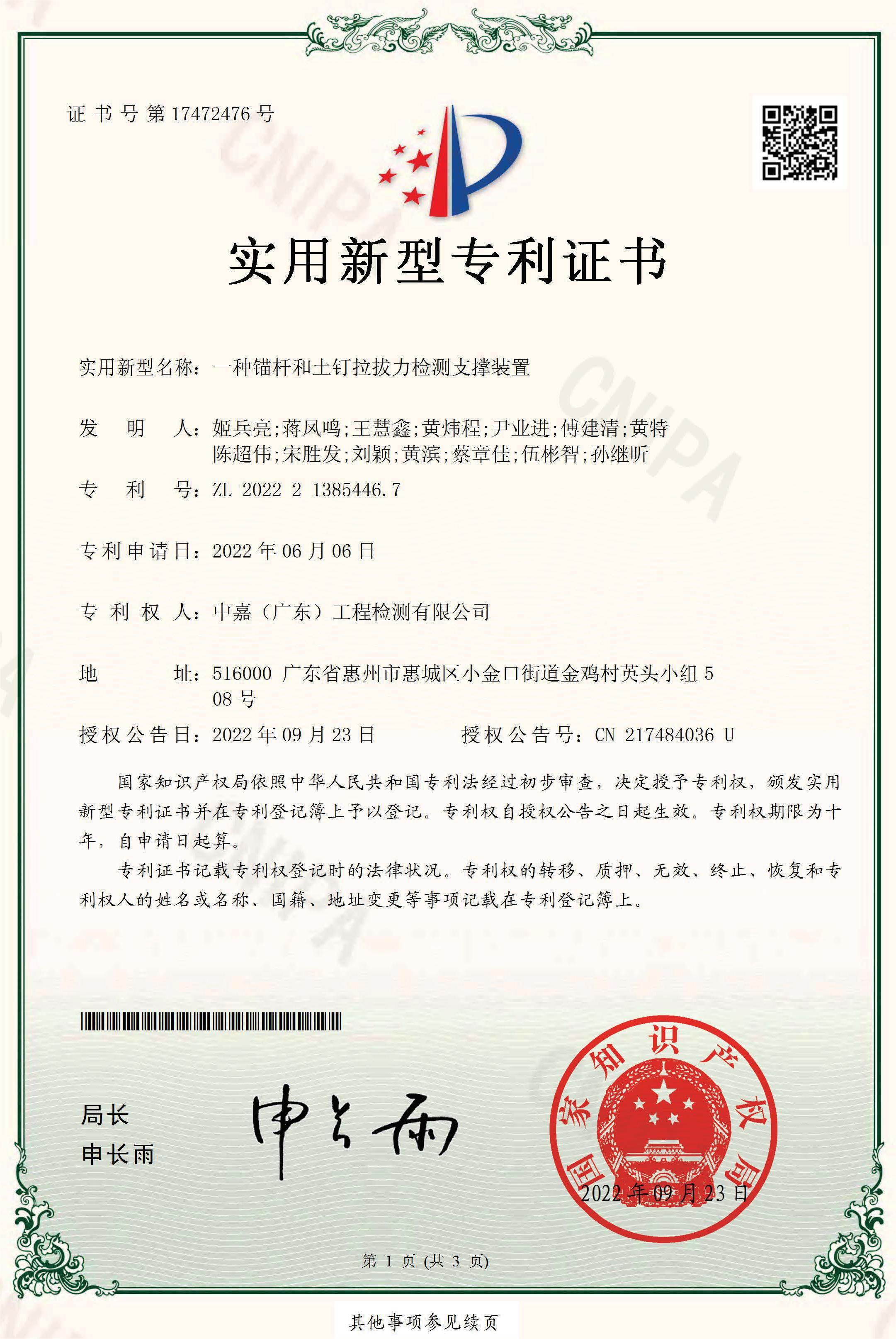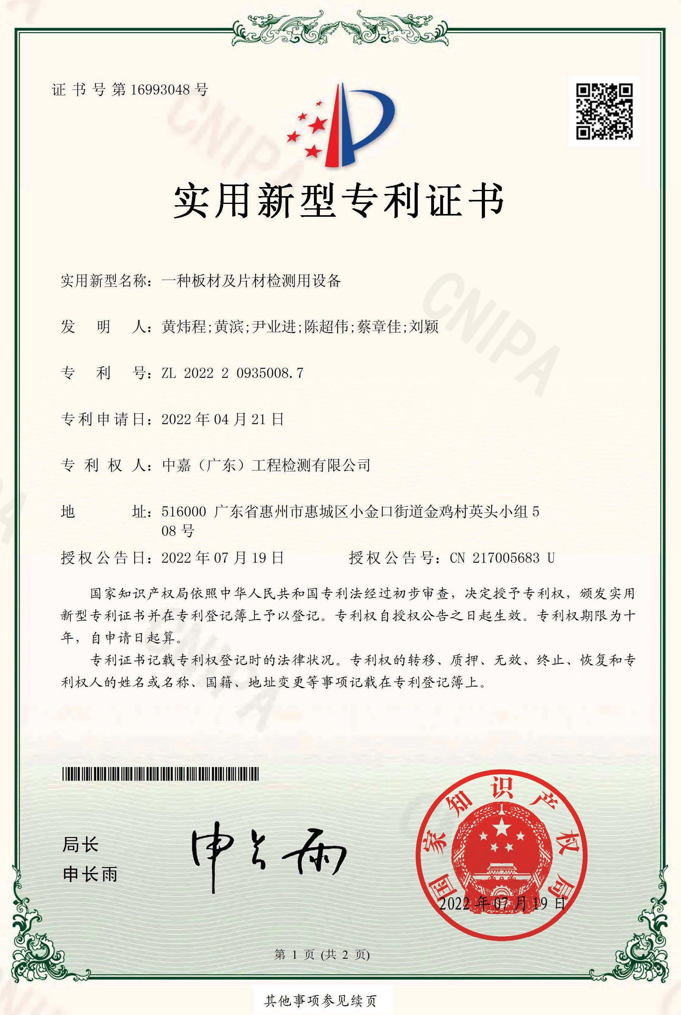 專利證書